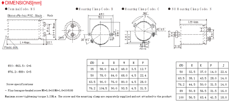 | Insulation Resistance | When measured between the terminals that are connected to each other and to the mounting clamp on the insulating sleeve covering the case by using an insulation resistance meter of 500Vdc, the insulation resistance shall not be less than 100mΩ | |||