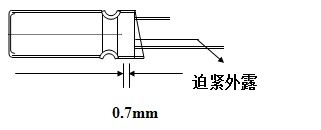 5.7、鋁殼外露:電容器底部(迫緊端)與眼睛垂直時,不可看到鋁殼,電容器頂部與眼睛垂直時,鋁殼外圍必須全部被膠管包住