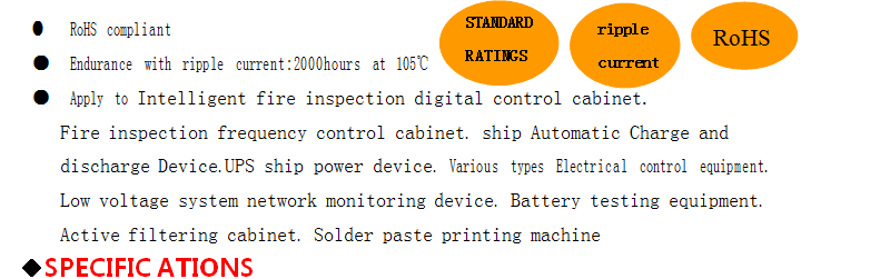 | Endurance | The following specifications shall be satisfied when the capacitors are restored to 20℃ after subjected to DC voltage with the rated ripple current is applied (the peak voltage shall not exceed the rated voltage) for 5,000 hours at 105℃ | |||